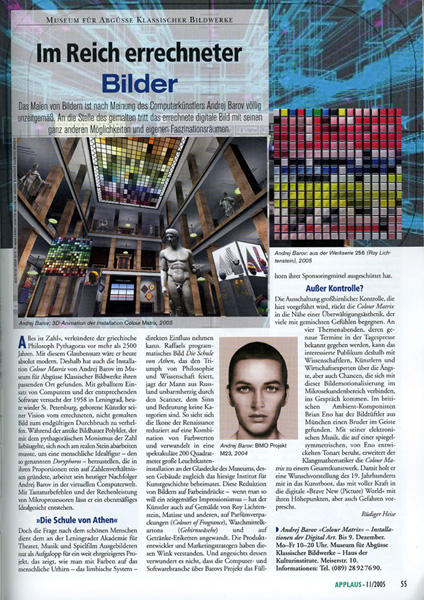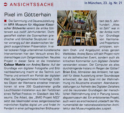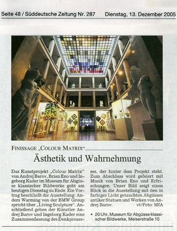 der BrainArt im Münchner Ausstellungsprojekt "Colour Matrix" von Andrej Barov und Brian Eno im Museum für Abgüsse Klassischer