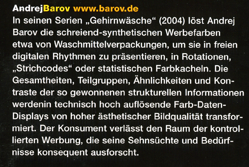 Andrej Barov präsentiert jetzt die Ausstellung „essen©e“ vom 31. März bis 17. Mai 2006 Werke aus den Serien 256, Wraps,