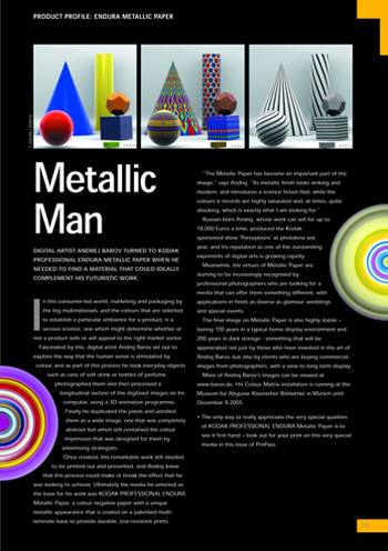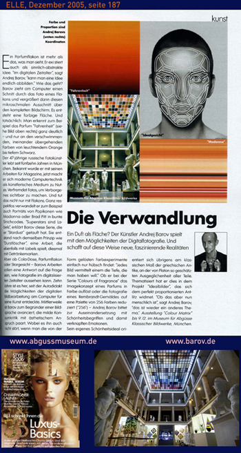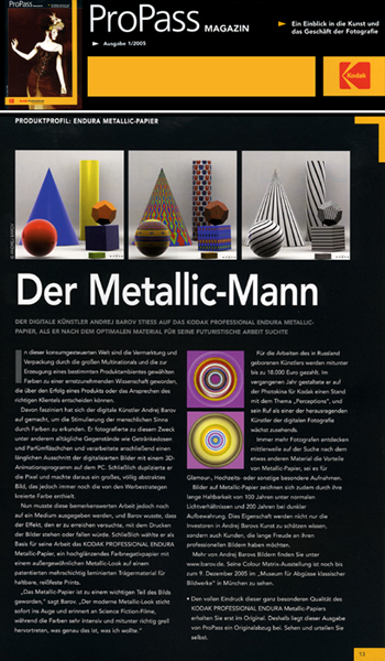Andrej Barov ist ein herausragender Exponent der Digital Art. Seine Arbeiten sind nicht weniger realistisch als klassische Fotografien, sie beziehen sich nur auf eine andere Realität und erforschen deren Rückwirkung auf unseren Alltag. Barov gilt als Vorreiter der Digital Art und entwickelt in Auseinandersetzung mit wissenschaftlichen Erkenntnissen der Gehirnforschung innovative und erweiterte Konzepte für die künstlerische digitale Fotografie. Seine Werke sind als ästhetischer, aber auch kritischer